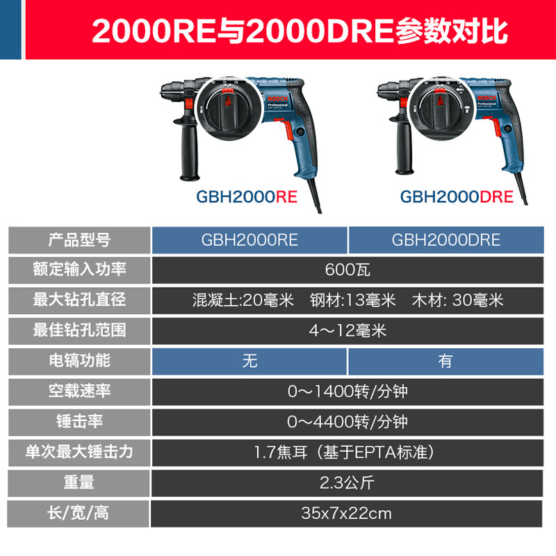 博世电锤电钻三用家用大功率轻型电镐多功能冲击钻电动工具GBH220
