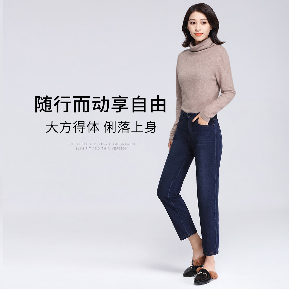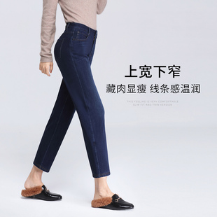加绒加厚九分高腰显瘦老爹弹力宽松萝卜裤 女 哈伦牛仔裤 捷纯冬季