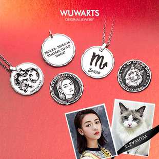WUWARTS原创手工雕刻照片纯银币吊坠项链情人节新年礼物纪念品