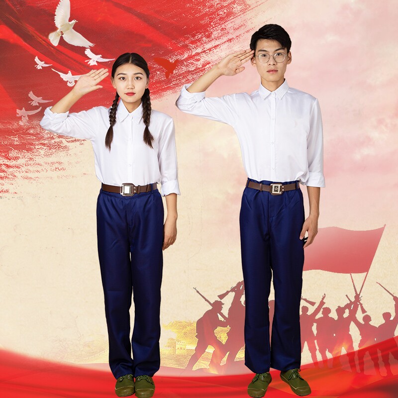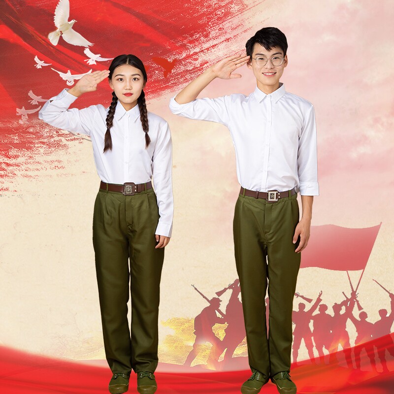 改革开放大中学生知青干部军装 80怀旧朗诵合唱绒花舞蹈表演出服装