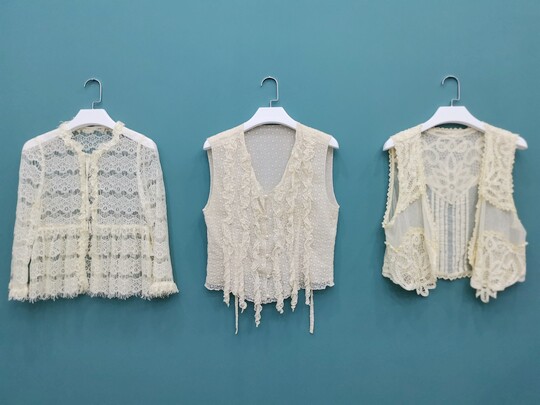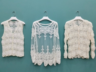 vintage日本制真丝蕾丝网纱钩花中古着孤品尖货仙美罩衫 衣19 衬衫