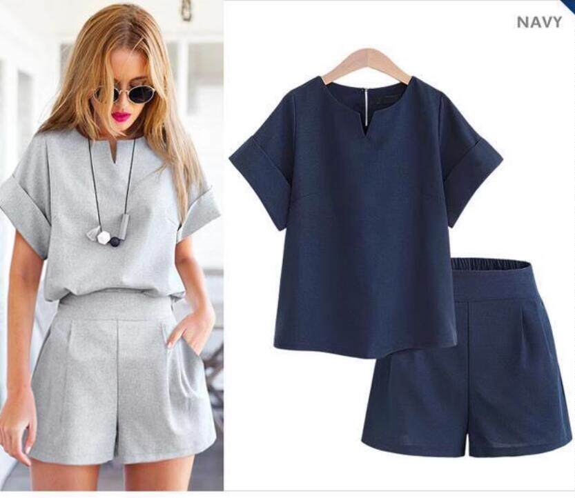 女装 欧美风大码 胖MM纯色短袖 上衣短裤 加肥加大夏装 两件套套装 新款
