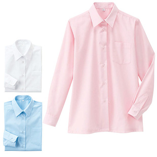 衬衫 日本cecile纯色女C牌长袖 高中制服通勤立领白色水色粉色 包邮