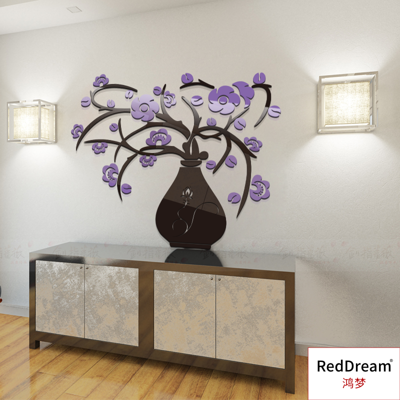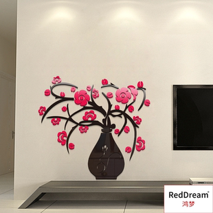 花瓶梅中国风3d立体玄关客厅餐厅水晶过道装 饰背景墙亚克力墙贴画