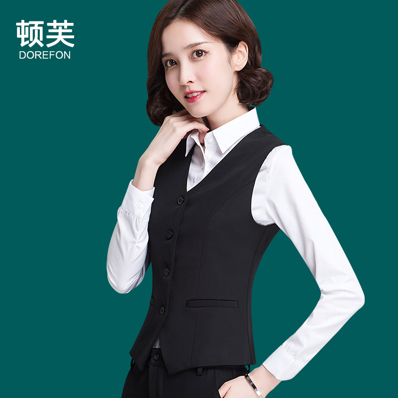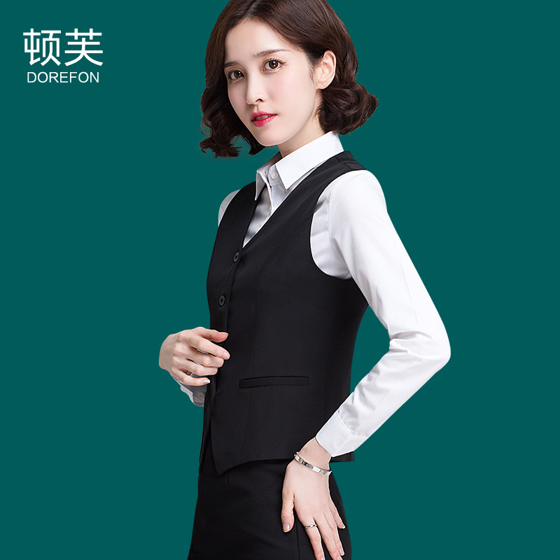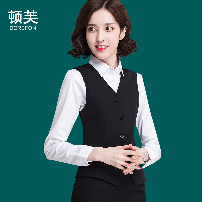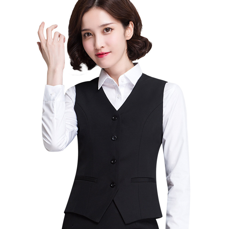 女气质白领制服职业马甲套裙女士工作服面试装 春夏职业装 马夹套装
