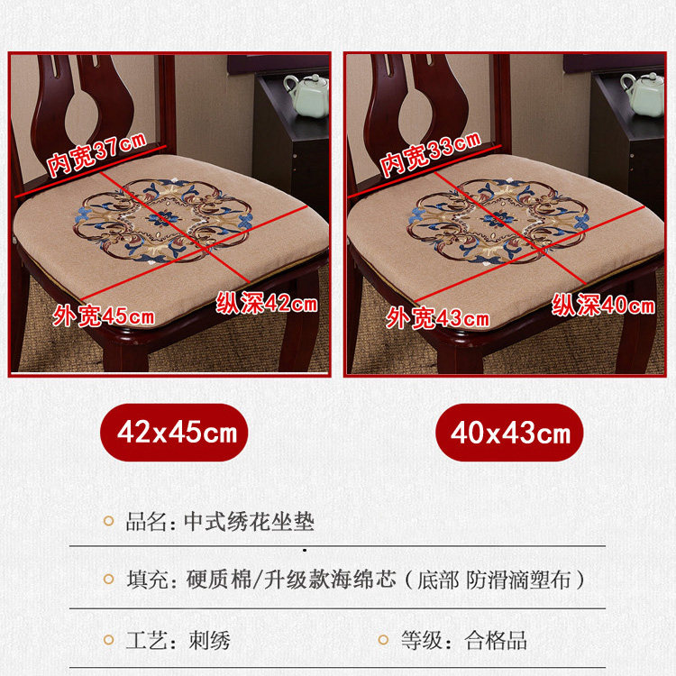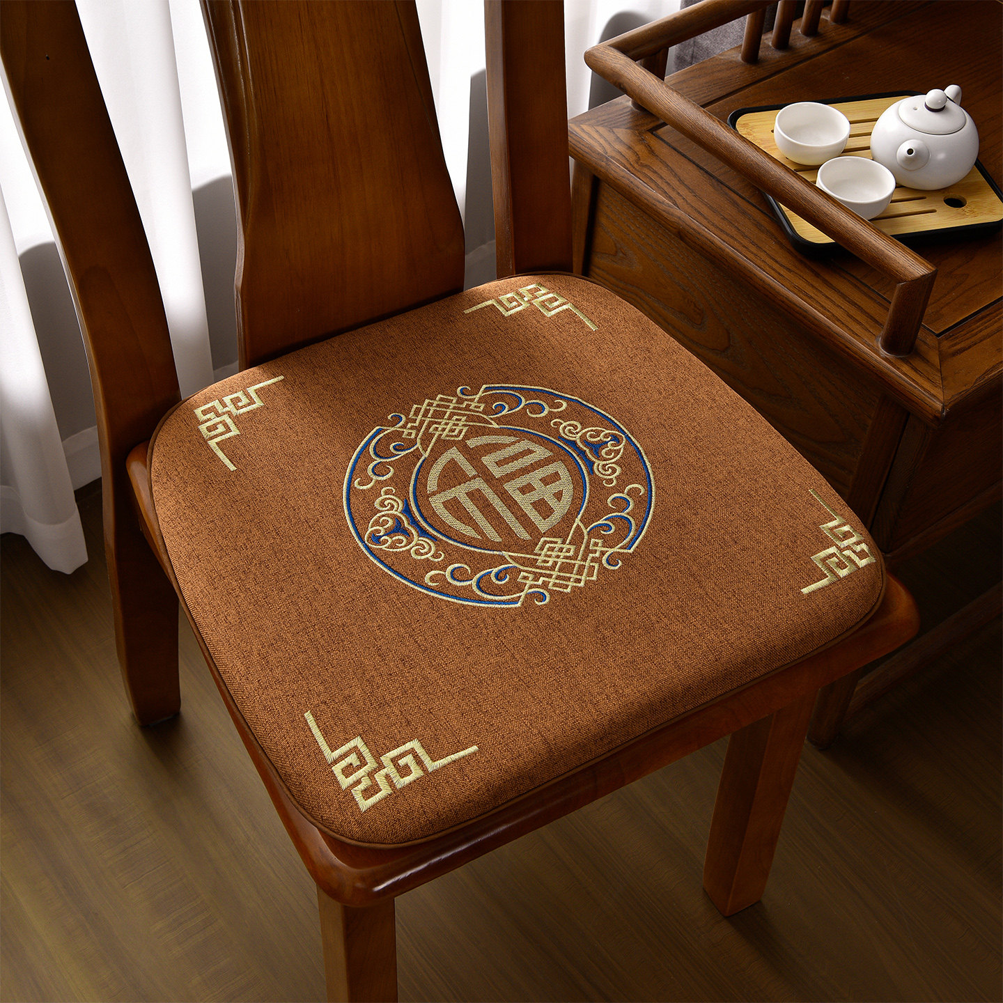 新中式 刺绣餐椅垫加厚家用坐垫实木椅子垫防滑椅座垫带绑带可拆洗