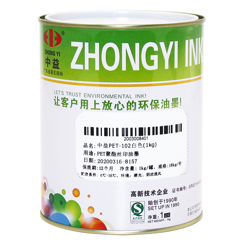 黑色 102白色 丝网聚酯塑料薄膜LPET覆膜不干胶 PET 丝印油墨中益
