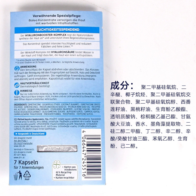 dm现货5盒装 精华胶囊7粒补水 德国Balea芭乐雅玻尿酸橄榄海藻保湿