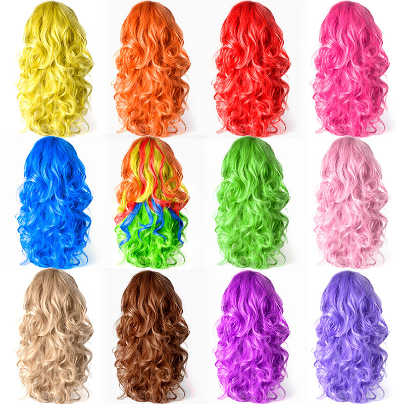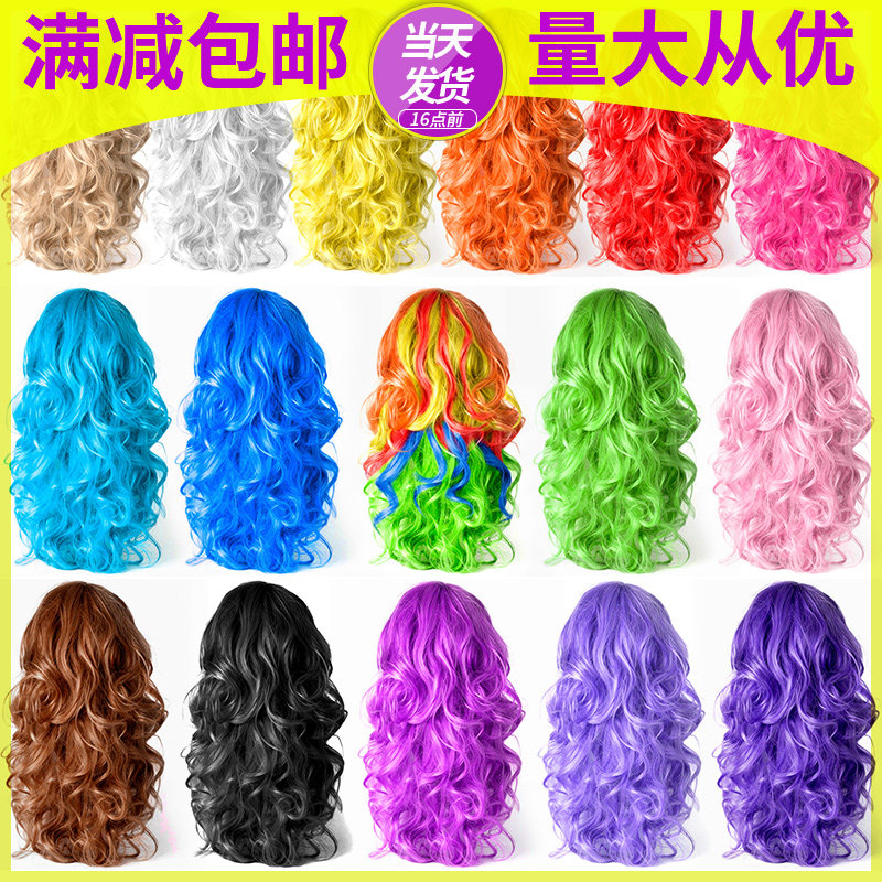 彩色长卷发假发全头套女粉色金白红蓝色羊毛卷cos万用大波浪假毛