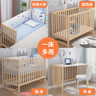 牧童坊婴儿床拼接大床实木bb床新生儿儿童床可移动摇篮床宝宝床