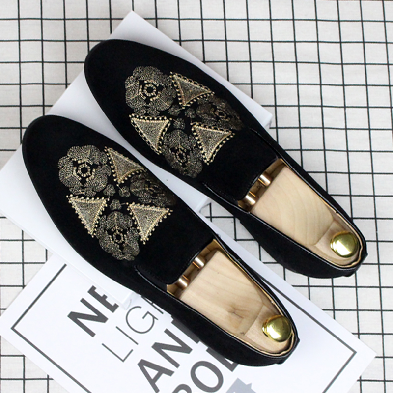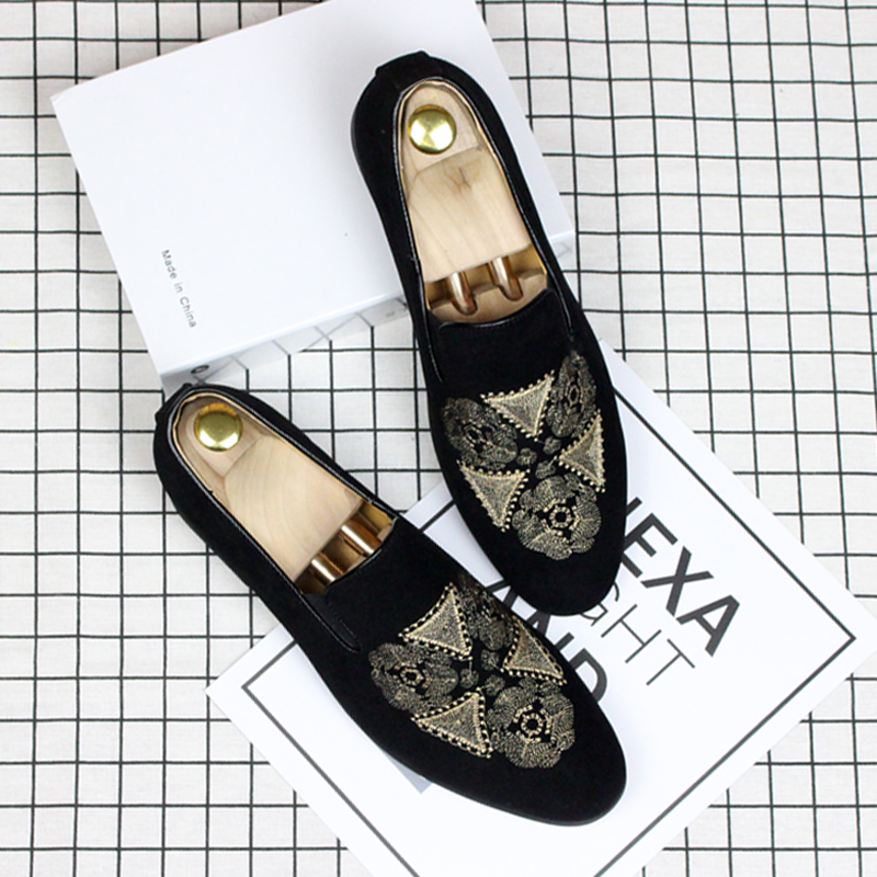增高反绒皮男鞋 新品 男真皮翻毛皮套脚刺绣豆豆鞋 皮鞋 子潮 尖头韩版