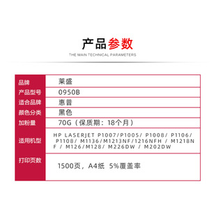莱盛0950适用惠普P1005碳粉激光打印机1008墨粉HPM1120 1566 1136