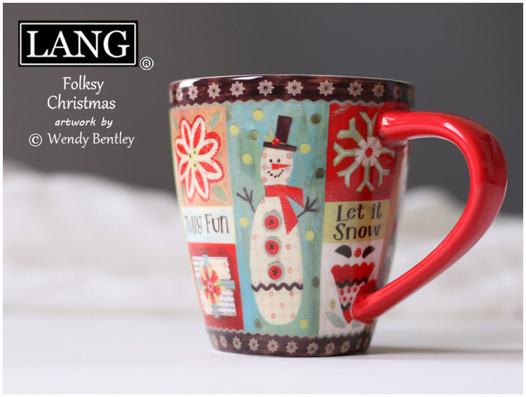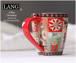 圣诞礼物 麋鹿雪人陶瓷杯 红色圣诞节 美国LANG厚实咖啡奶茶杯