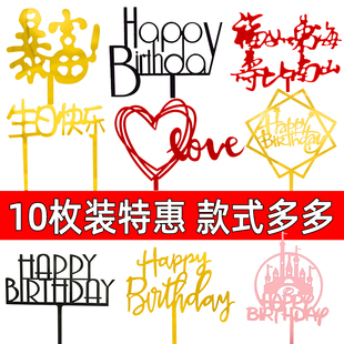 亚克力插牌生日快乐蛋糕装 饰插旗插件摆件网红暴富祝寿派对甜品台