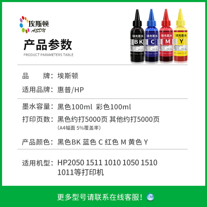 2050油墨填充连供通用4色100ml彩色墨汁照片 1510 埃斯顿适用惠普deskjet1000 1010打印机802墨盒墨水HP1011