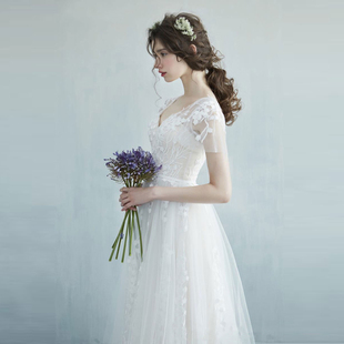 森系仙女吊带韩式 新娘结婚花朵写真晨袍晚礼服120 旅拍轻婚纱法式