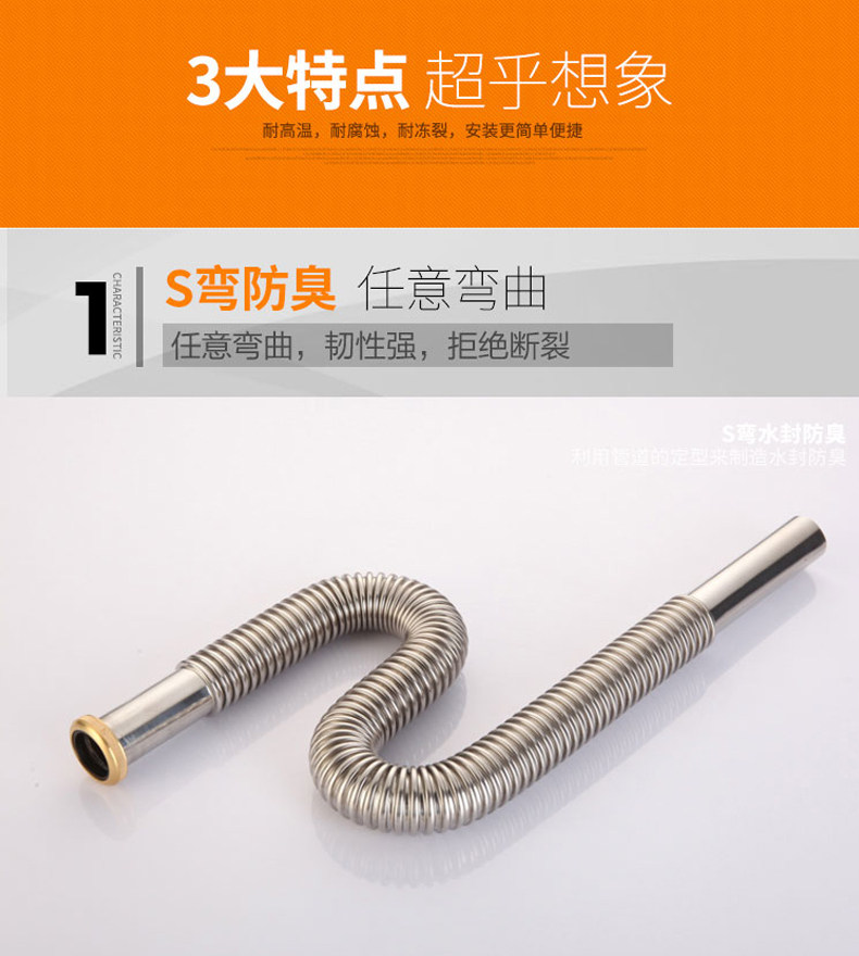 304不锈钢面盆下水管201加长S弯防臭洗手盆配件台盆排水管防鼠咬
