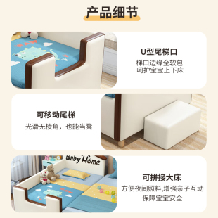小木屋儿童床拼接床加宽床边床女孩男孩小床宝宝婴儿床皮大床实木