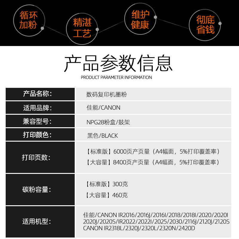 2022 2025 2320J IR2016墨粉2018 2420D粉筒NPG28粉仓 2318L 2020 2120 彩印美适用佳能Canon 2030粉盒2116
