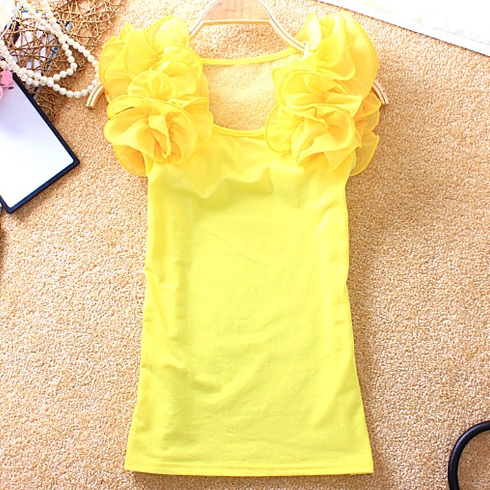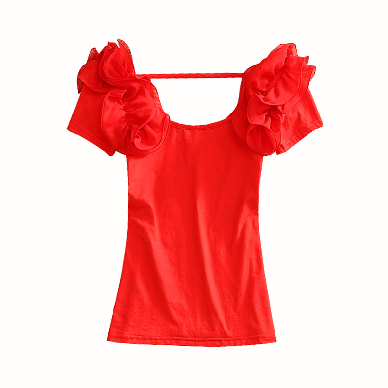 外穿时尚 韩版 设计感短袖 T恤修身 上衣女 夏季 显瘦木耳边泡泡袖 新款