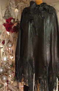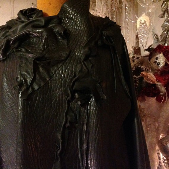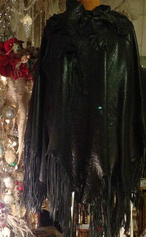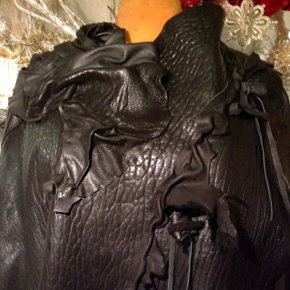 美国代购 华丽手作朋克不规则补丁皮革流苏摇滚斗篷风衣 Stripe㊣