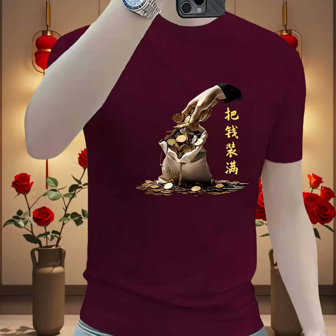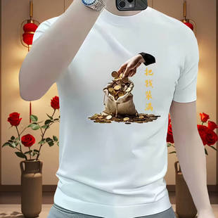 圆领体恤半袖 潮牌国潮搞钱趣味印花短袖 新款 夏季 纯棉上衣 t恤男士