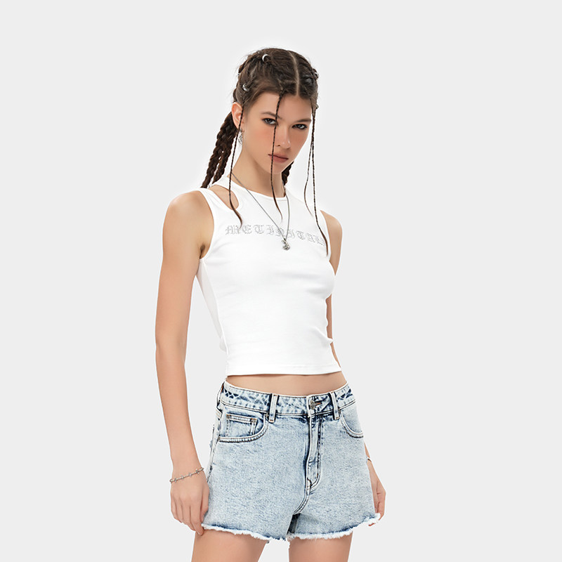 METinitaly麦特字母印花镂空潮流女士背心夏季 简约百搭上衣 新款