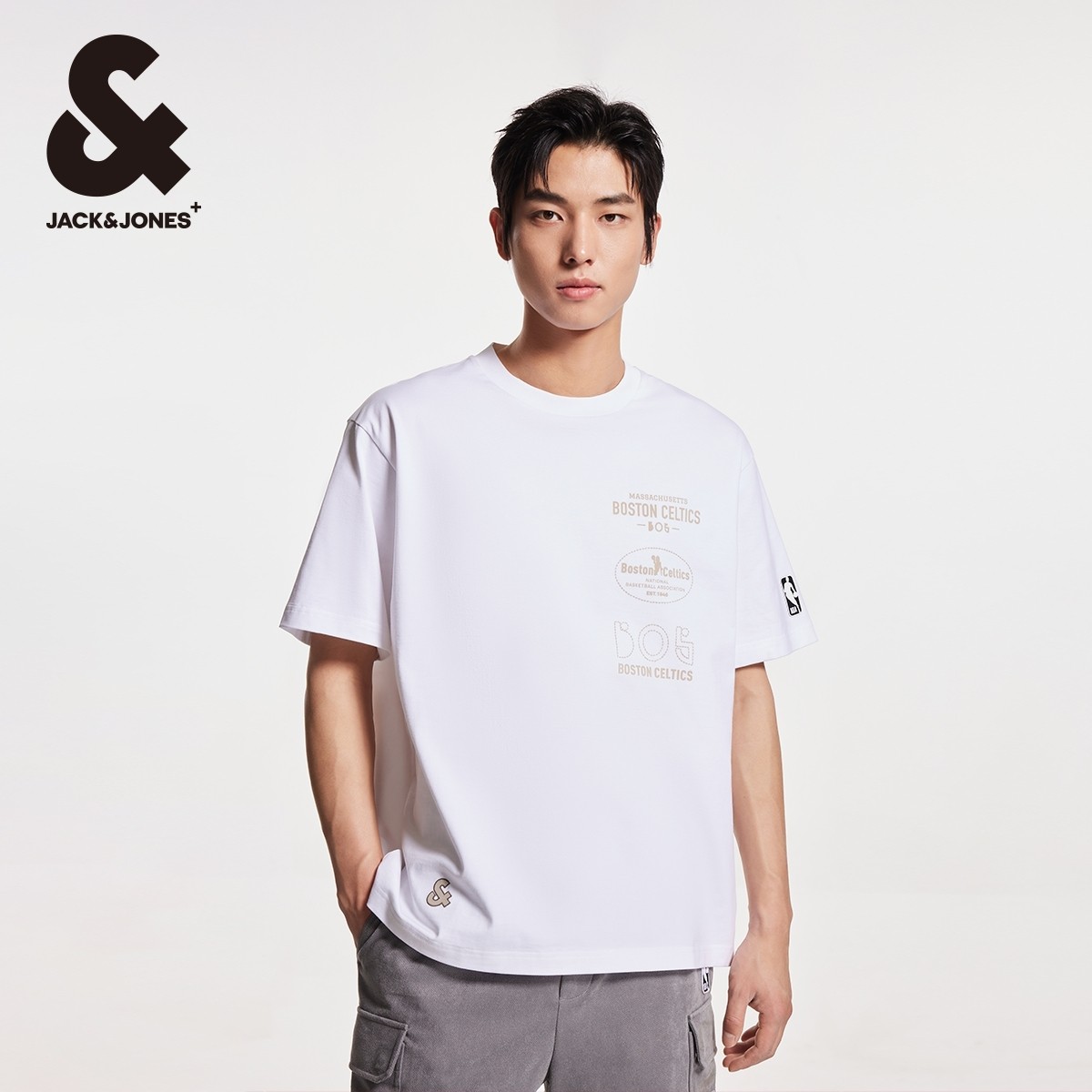 字母胶印时尚 秋季 篮球宽松休闲圆领T恤上衣 NBA联名款 杰克琼斯男装