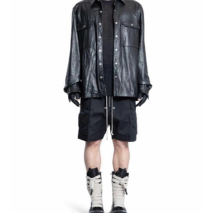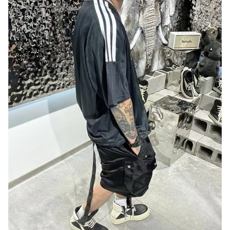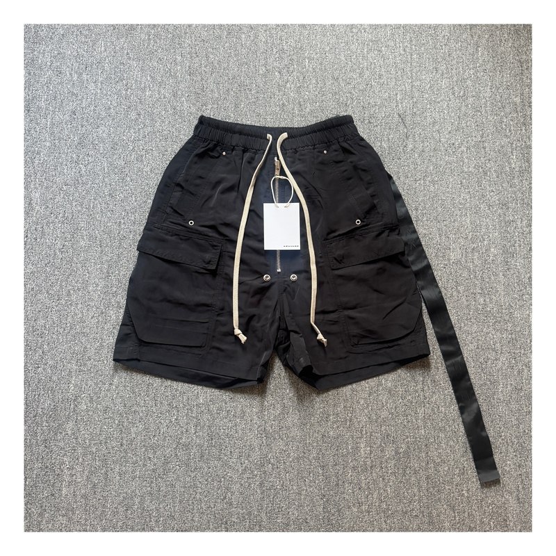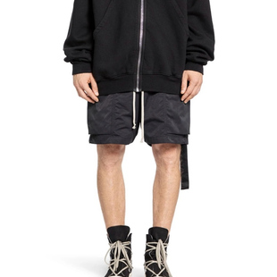 夏季 黑色休闲短裤 尼龙飘带抽绳松紧腰工装 男女款 口袋五分裤 RO风格