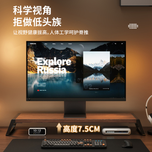 加宽台式 电脑显示器增高架usb扩展充电笔记本屏幕支撑架电竞桌面抬高办公工位收纳置物金属折叠底座