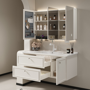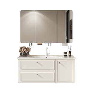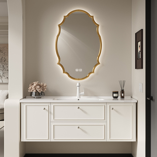 法式 奶油风陶瓷一体智能浴室柜组合卫生间洗手盆洗脸盆柜洗漱台盆