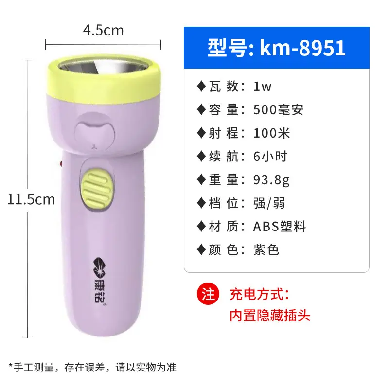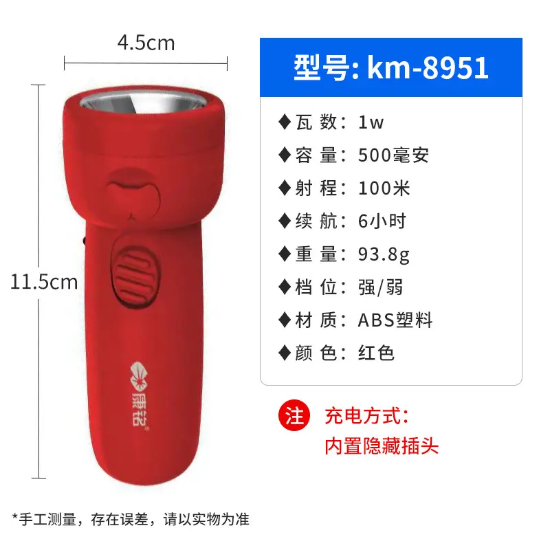 爆款 康铭led强光手电筒长续航充电户外家用学生迷你便携超亮远射