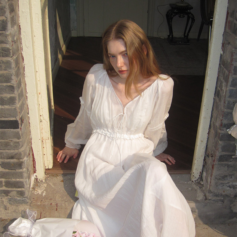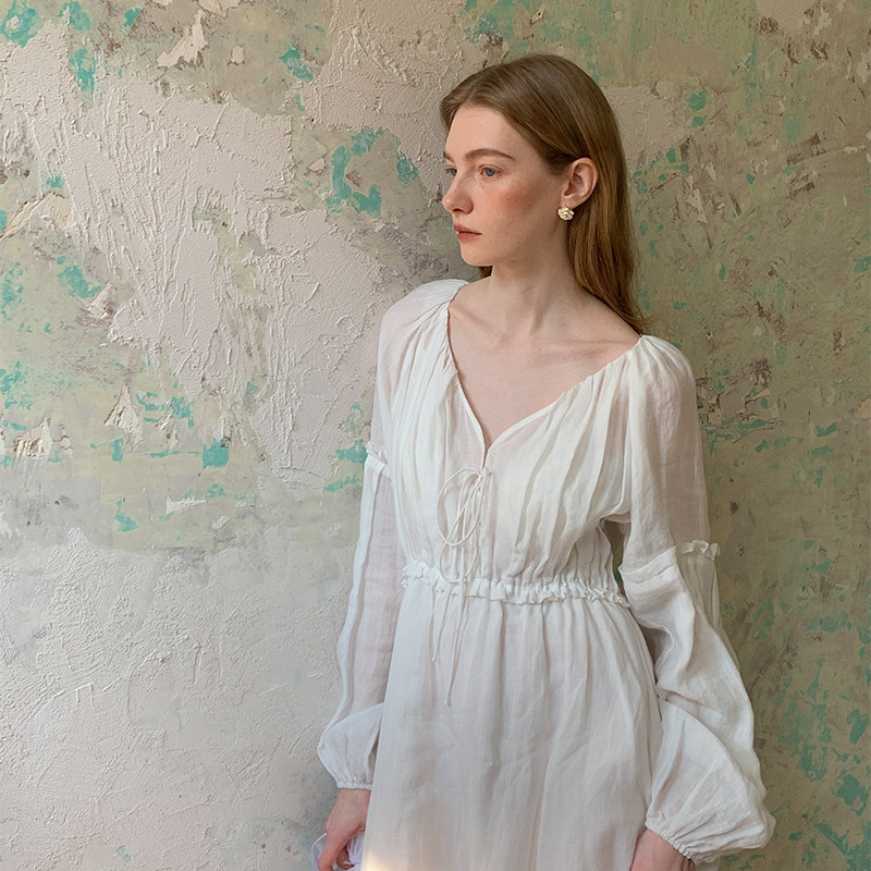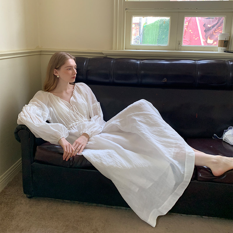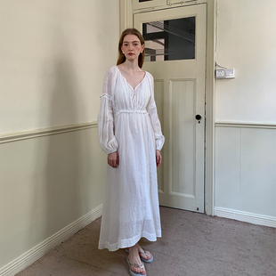 气质白色早秋连衣裙女长裙高级感收腰显瘦 法式 ZHUYIYI 100苎麻