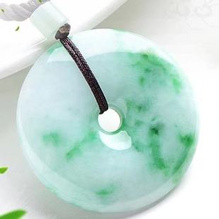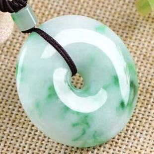 正品 玉坠玉器挂件送礼送朋友 天然翡翠色飘花平安扣玉石吊坠男女款