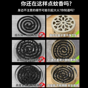 防火蚊香盒不锈钢赶蚊器户外防蚊香盘带盖怀炉托盘加高家用香薰炉