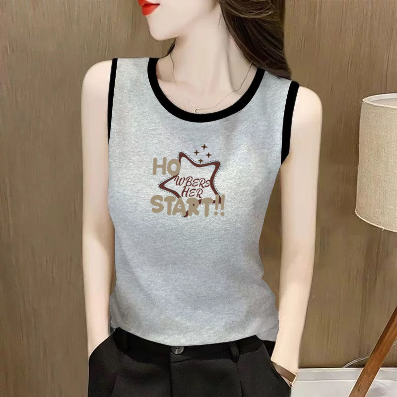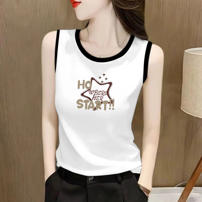 宽松印花内搭无袖 新款 T恤上衣 纯棉吊带背心女夏季 折扣店外贸女装