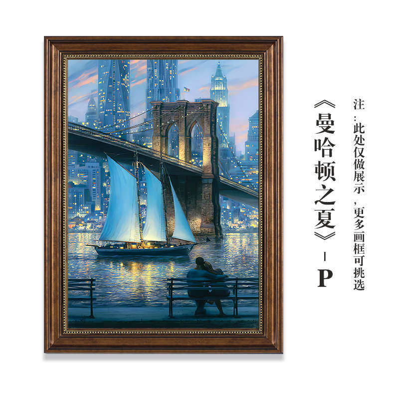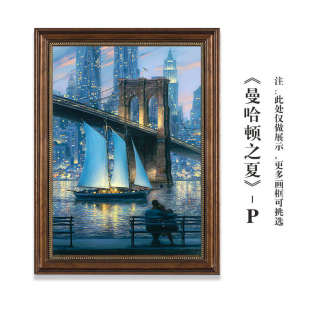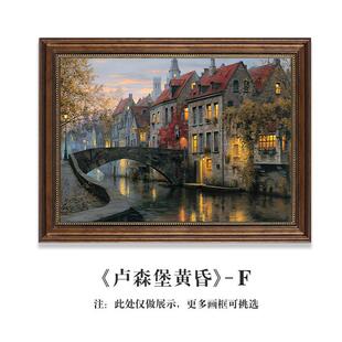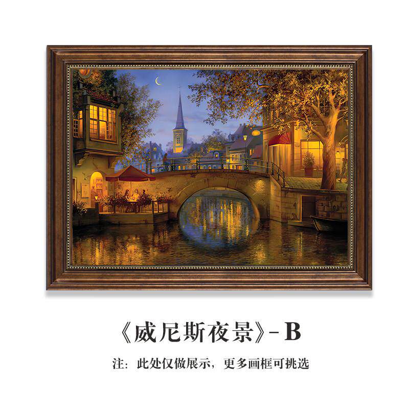 餐厅壁画走廊 复古客厅风景款 过道油画挂画横威尼斯建筑装 饰画美式