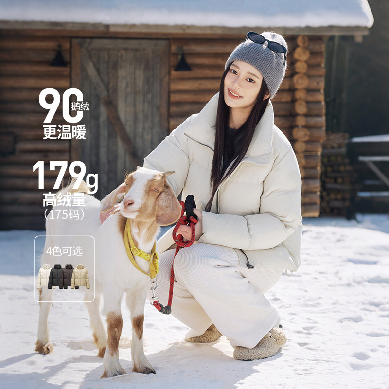 快鱼羽绒服2025年冬新款 外套 女士防风厚实立领休闲百搭小个子短款