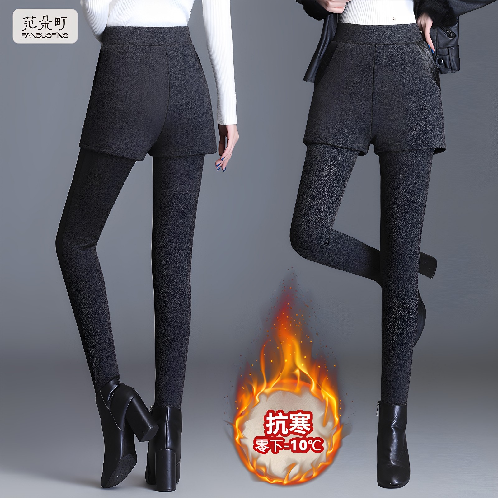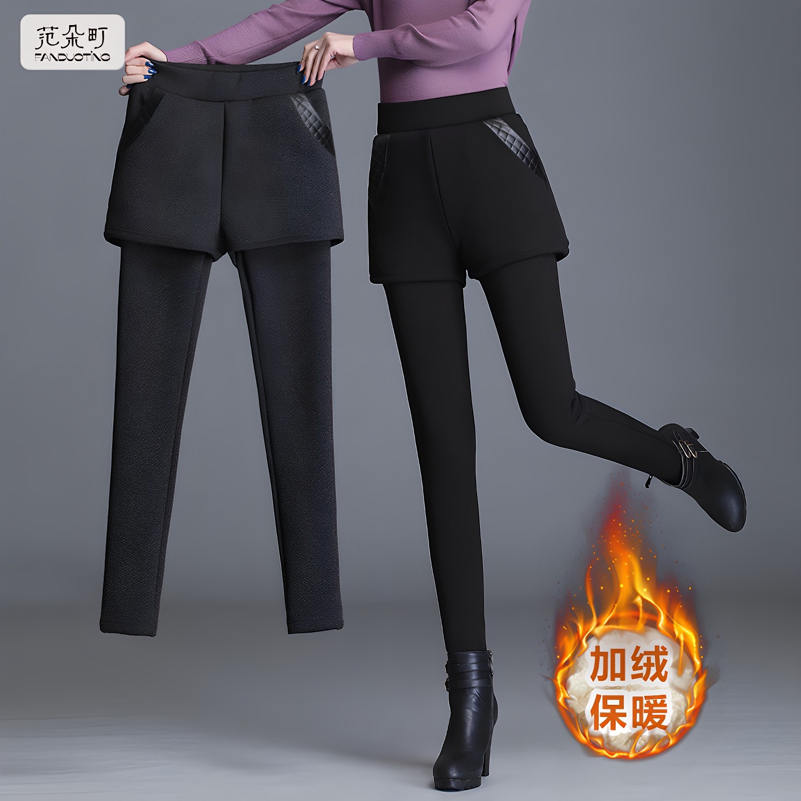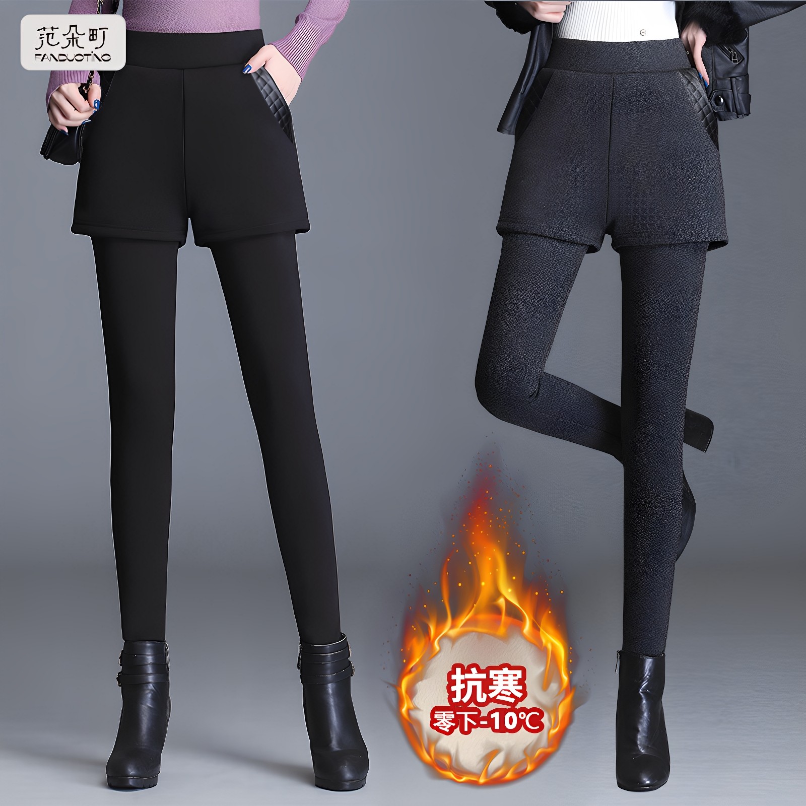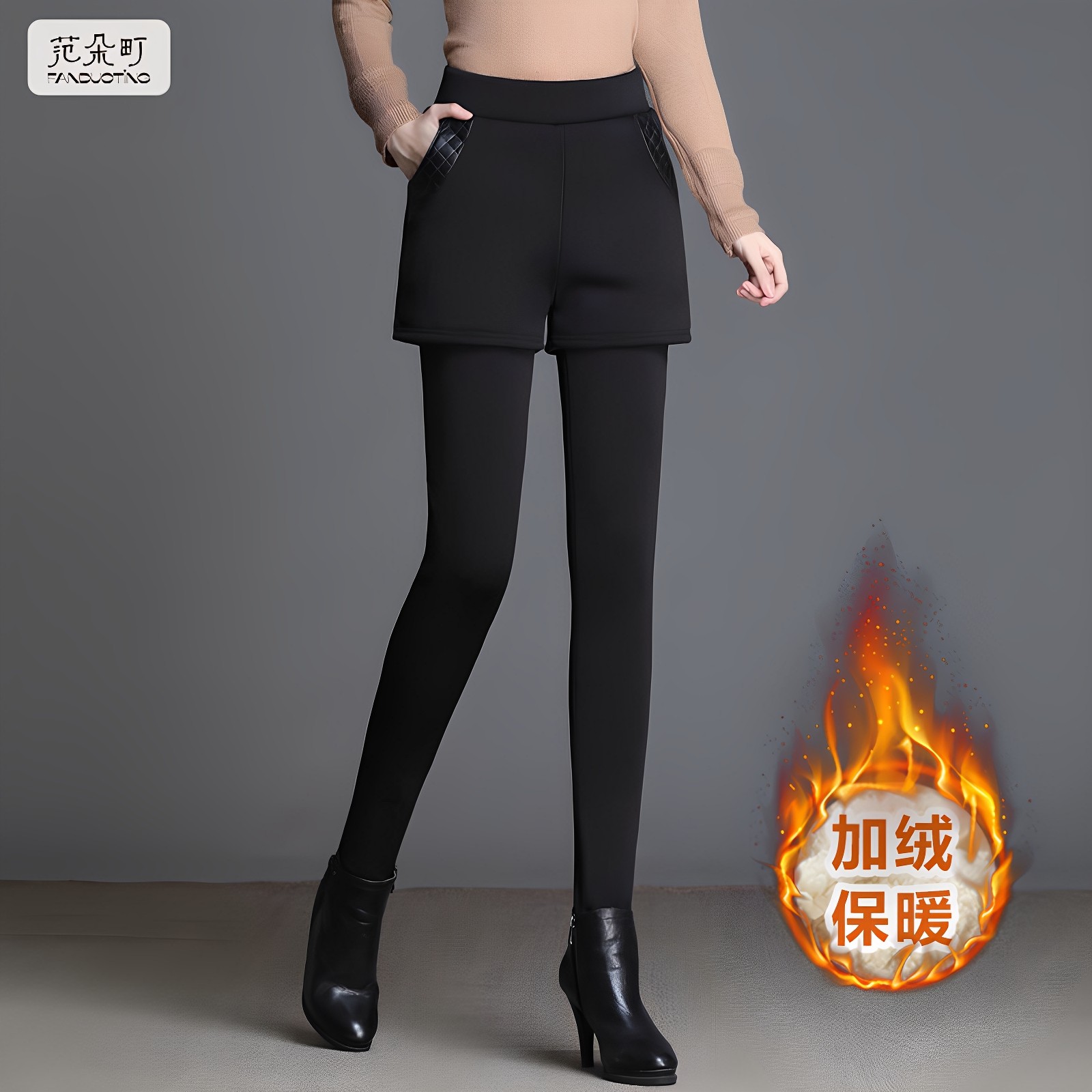 子2025新款 羊羔绒假两件秋冬天外穿打底裤 加绒加厚保暖高腰小脚裤