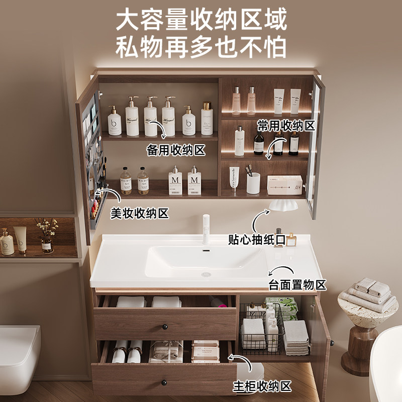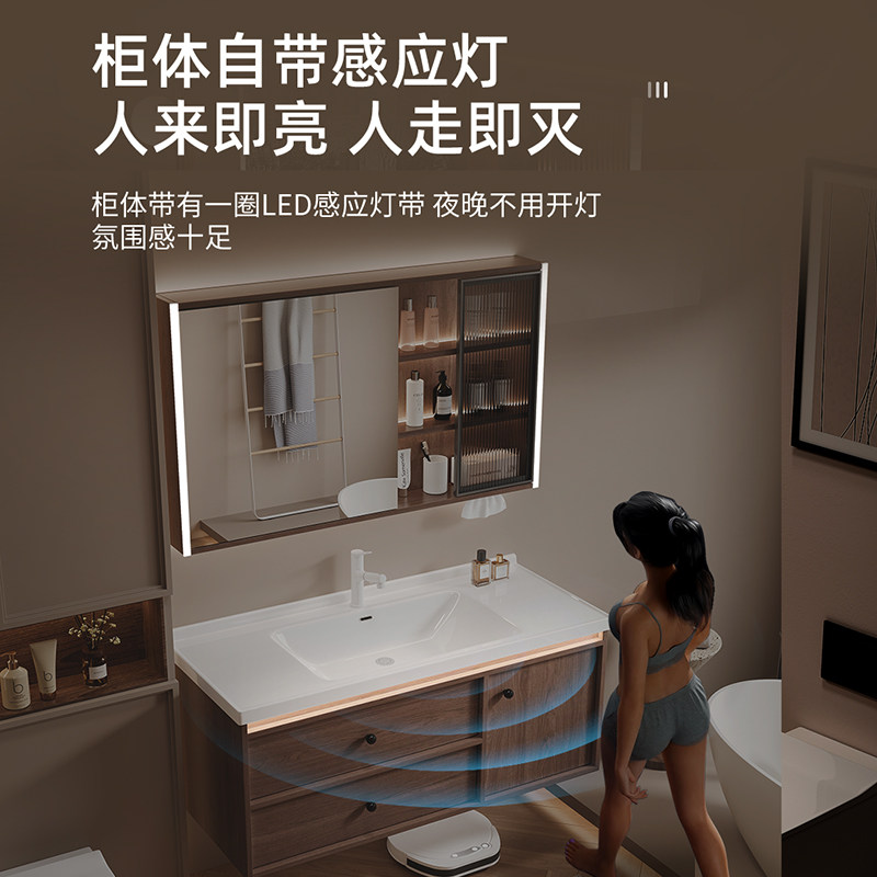 现代简约智能浴室柜组合实木卫生间陶瓷一体盆洗手洗脸洗漱台套装