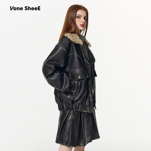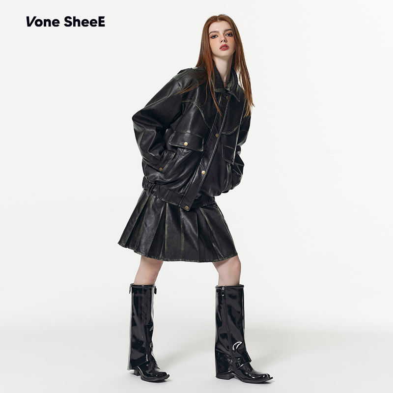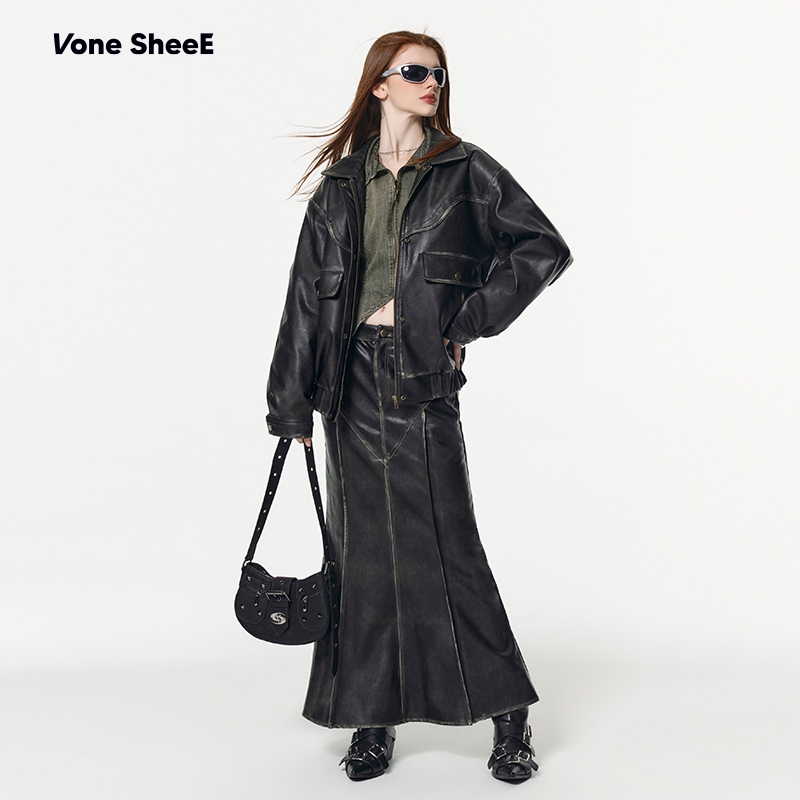 柔软仿皮夹克外套欧美风皮衣夜羽 时尚 衣纱布菲2025秋冬装 新款