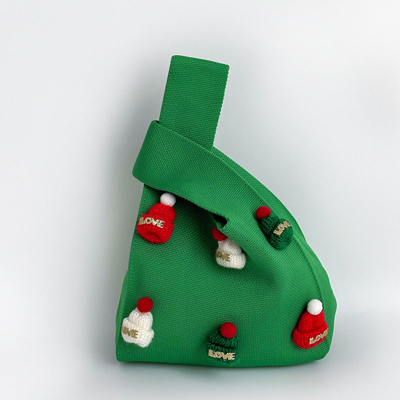 针织手提包新款 便当饭盒包上班杂物 圣诞节糖果袋平安夜礼品袋个性