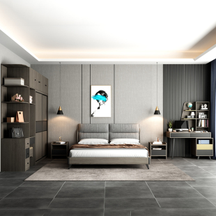 北欧简约现代卧室套房单人床开门衣柜带梳妆台床头柜组合