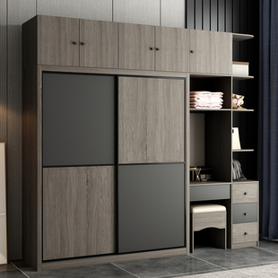床边小衣柜带书桌一体梳妆台置物架组合实木单人可定制衣橱床头柜