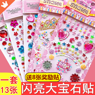杰利卡通水晶贴纸3d立体浮雕亚克力钻石宝石贴纸儿童女孩手机装 饰粘贴美甲贴冰箱贴纸 饰贴画小动物树脂贴纸装