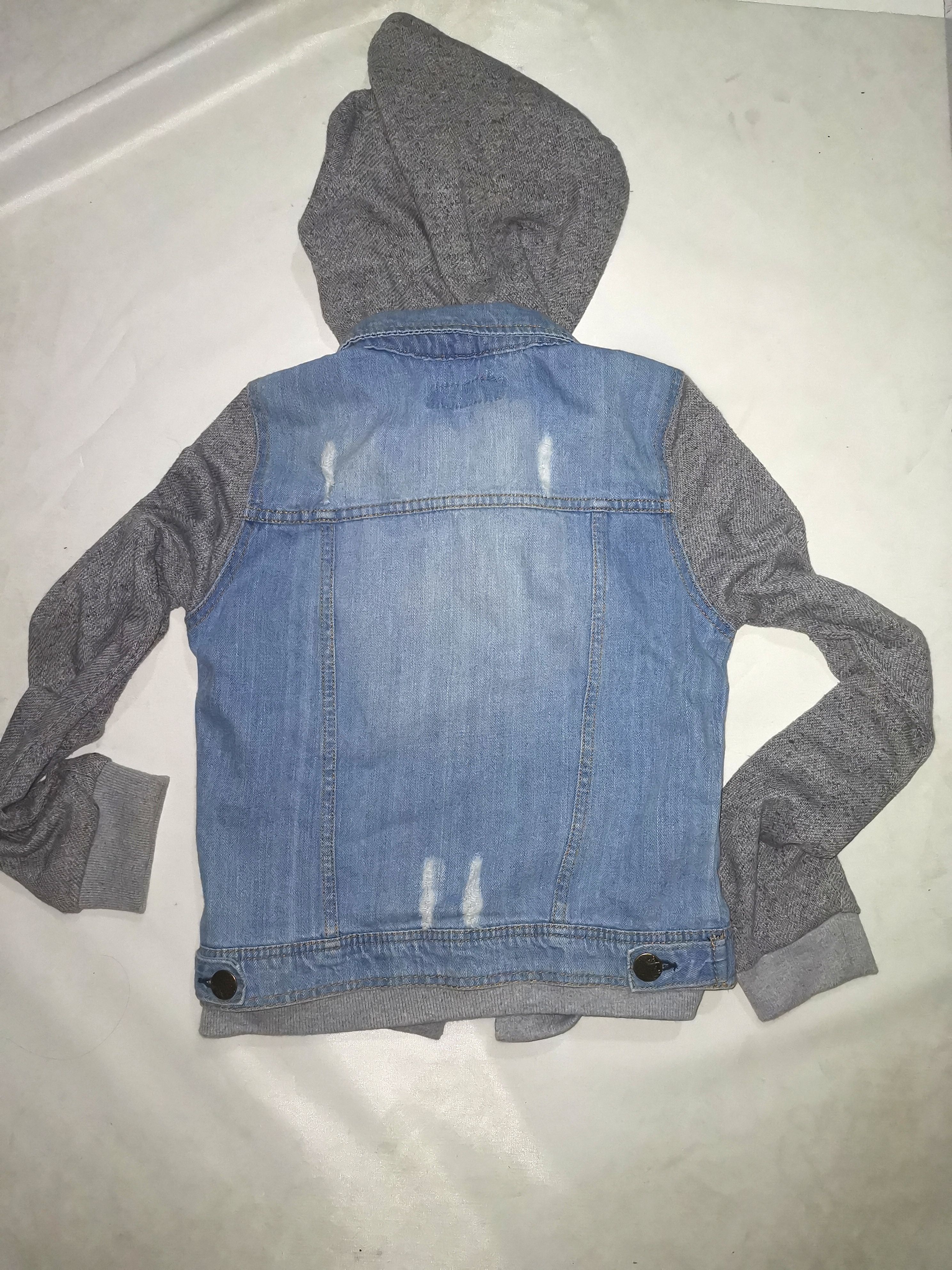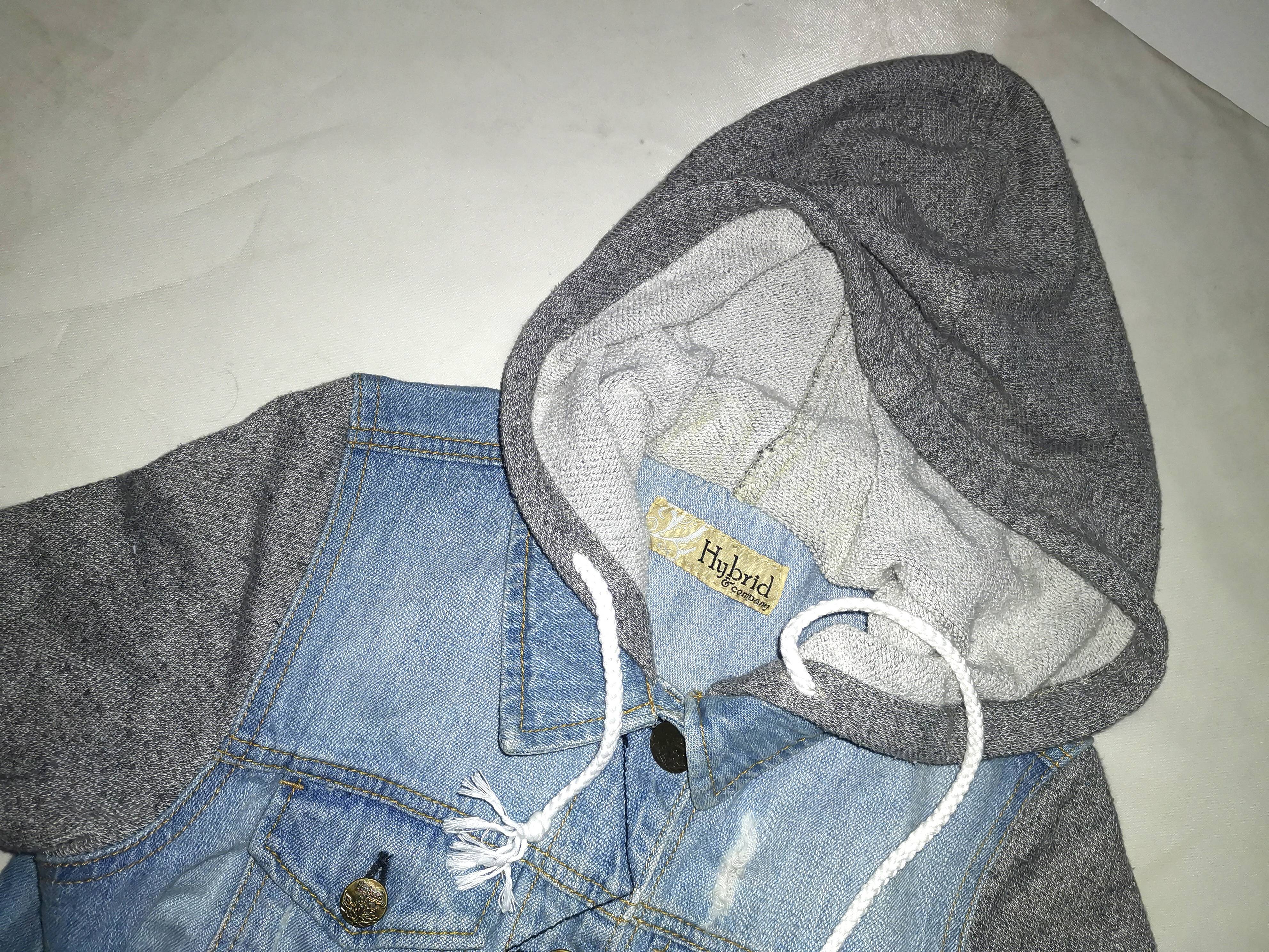 外贸原单出口针织拼接牛仔破洞连帽上衣外套牛仔服100斤以内穿