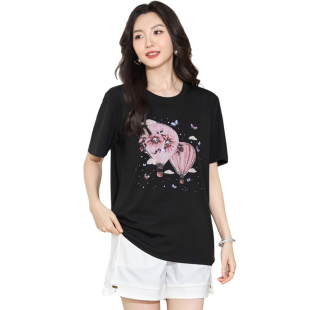 女装 T恤衫 胖mm宽松显瘦休闲上衣200斤胖妹妹夏装 短袖 洋气时尚 大码