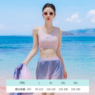特步女士泳衣2026年新款 连帽度假海边三件套 遮肚显瘦分体保守时尚