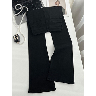 女新款 黑色女装 裤 300斤大码 喇叭裤 弹力微喇牛仔裤 子修身 胖mm韩版