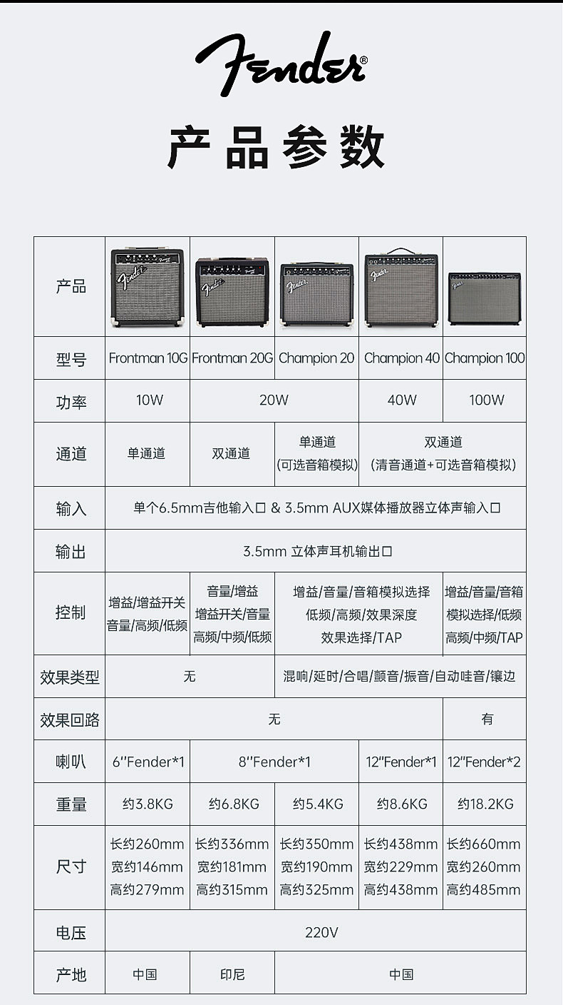 100瓦电吉他电贝司音箱音响 Fender芬达champion II冠军二代25